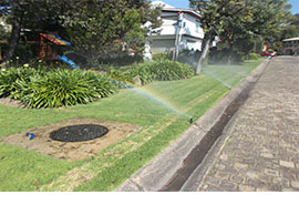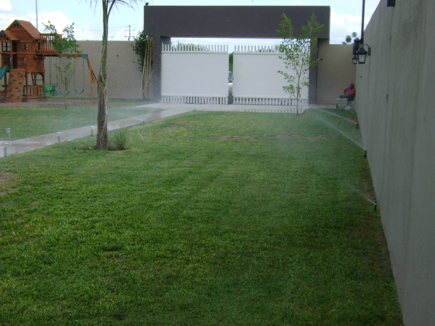 Colocacion de pasto y sistema de riego residencila en lomas de Cocoyoc con mantenimiento por poliza anual.